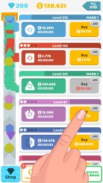 Теперь попробуй начать строить совершенно разные фигуры. У тебя могут быть разные треугольники, квадраты и даже шестиугольники! Они будут попадаться не так часто, но дадут тебе истинное удовольствие. Спустя пару минут начинай делать собственный бизнес. Успей скачать Idle Shapes на андроид!