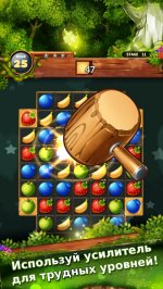 Создавая такие цепочки, вы будете взрывать их, получая за это очки, которые необходимы для прохождения уровней, а также покупки различных бонусов, которые, в свою очередь, помогут быстрее пройти уровень. При этом бонусы так же получаются в процессе игры за складывания длинных цепочек. Если вам нравятся такие игры, тогда скачивайте Sweet Fruit POP на Андроид и приступайте к игре. В общем-то, здесь нет ничего сложного и весь геймплей построен по классической модели «три в ряд». Игровой процесс разделён на уровни.