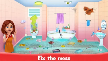 Это может быть столовая, спальня, кухня, ванная комната или что-то совершенно другое. Несомненно, весь ваш дом нуждается в уборке, так как здесь есть много места, которые надо привести в порядок. Кроме этого вы сможете навести порядок в местном ресторане, бассейне, а также кафетерии. При уборке дома вам конечно же понадобятся самые разные инструменты, чтобы выполнить все задачи. Постарайтесь очистить абсолютно все, пол, потолок, стены, двери и все остальное. Уберите паутину, соберите весь мусор, протрите пол влажной тряпкой, а также расставьте все вещи по своим местам.