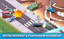 Чтобы выбить недругов из колеи, можно таранить их автомобили или использовать богатый арсенал вооружения, которое прикрепляется к вашему транспорту. Перед началом гонки можно выбрать разные виды средств передвижения: автобусы, грузовики, спортивные кары и даже танки. Для этого достаточно скачать Crash of Cars на андроид и начать сражение на колесах.