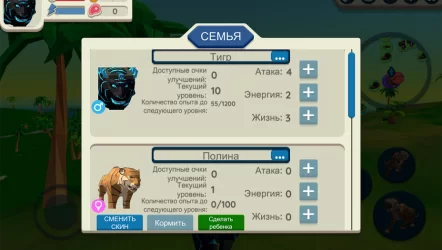 Никто не сомневается, что тигры являются самыми прекрасными и мощными животными в мире. В этой истории вы сможете поиграть за одного из них. Создайте настоящую семью тигров, прогуляйтесь по полностью открытому миру и постарайтесь выполнить все интересные задания. Для начала нужно просто создать тигра, а уже потом отправиться на поиски приключений. Начинайте охоту за животными, заводите себе семью, постоянно улучшайте собственного тигра, а также членов его семьи. Чем больше вы будете выполнять заданий, тем сильнее станет ваш тигр. Настройте его внешний вид, подберите один из понравившихся скинов и улучшайте персонажа. В Симулятор тигра 3D вы сможете прокачивать определенные навыки тигра, характеристики, которые будут влиять на всю вашу семью.