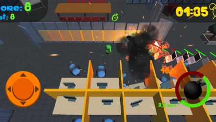 Вы будете играть роль белого воротничка, который после тяжелой работы решил оторваться на полную катушку. Он остался один в своем офисе, причем решил разорвать его в клочья. Бросайте бомбы, усиливайте их и пробирайтесь вперед внутри офиса. Вам придется пройти все преграды на своем пути, пробежать определенное расстояние за указанное время. Сделайте все возможное, чтобы вас не поймали, иначе игра будет окончена. Поиграть можно совершенно бесплатно, получить уникальные скины, решить все свои задачи и пройти много уровней. Испытайте свои возможности в автоматическом режиме, насладитесь увлекательными приключениями и ставьте рекорды.