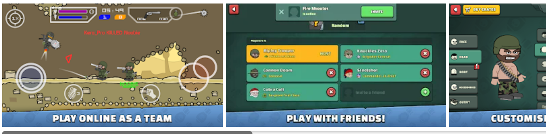 «Mini Militia - Doodle Army 2» (часто называемая просто «Mini Militia») — популярная многопользовательская стрелялка с мультяшной графикой и динамичным игровым процессом.