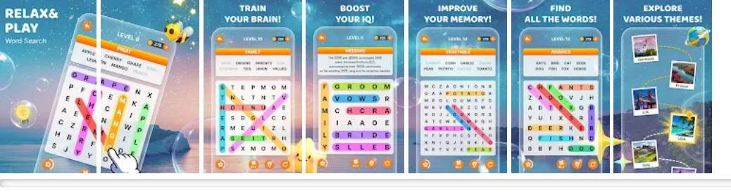 Отправляйтесь в увлекательное приключение по поиску слов, которое одновременно развлекает и обучает.