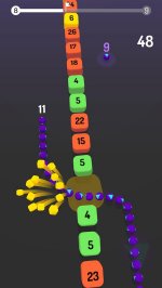Попытайтесь вовремя среагировать на препятствия, передвигайте свою змейку уверенно и не врезайтесь в блоки. Есть одна особенность этого проекта, так как абсолютно все блоки имеют определенную прочность и это стоит учитывать. Если вы разрушили тот или иной блок, то сразу же потеряете шарики. Так что в этом случае все шарики на своем пути вам придется собрать.